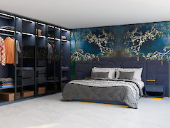 U599 Індиго синій – це синій, майже чорний декор із категорії модних відтінків «Nearly Black» (майже чорний). У дизайні меблів він використовується для створення надзвичайно елегантного контрасту у поєднанні з темно-коричневими дерев'яними декорами, наприклад, Горіхом, і тому часто застосовується у виробництві меблів для житлових приміщень. Його холодний зовнішній вигляд виходить за рахунок поєднань із такими репродукціями матеріалів, як бетон чи сталь.