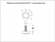 Меблева ніжка Poliplast НП-12 М10 з регулюванням, чорний