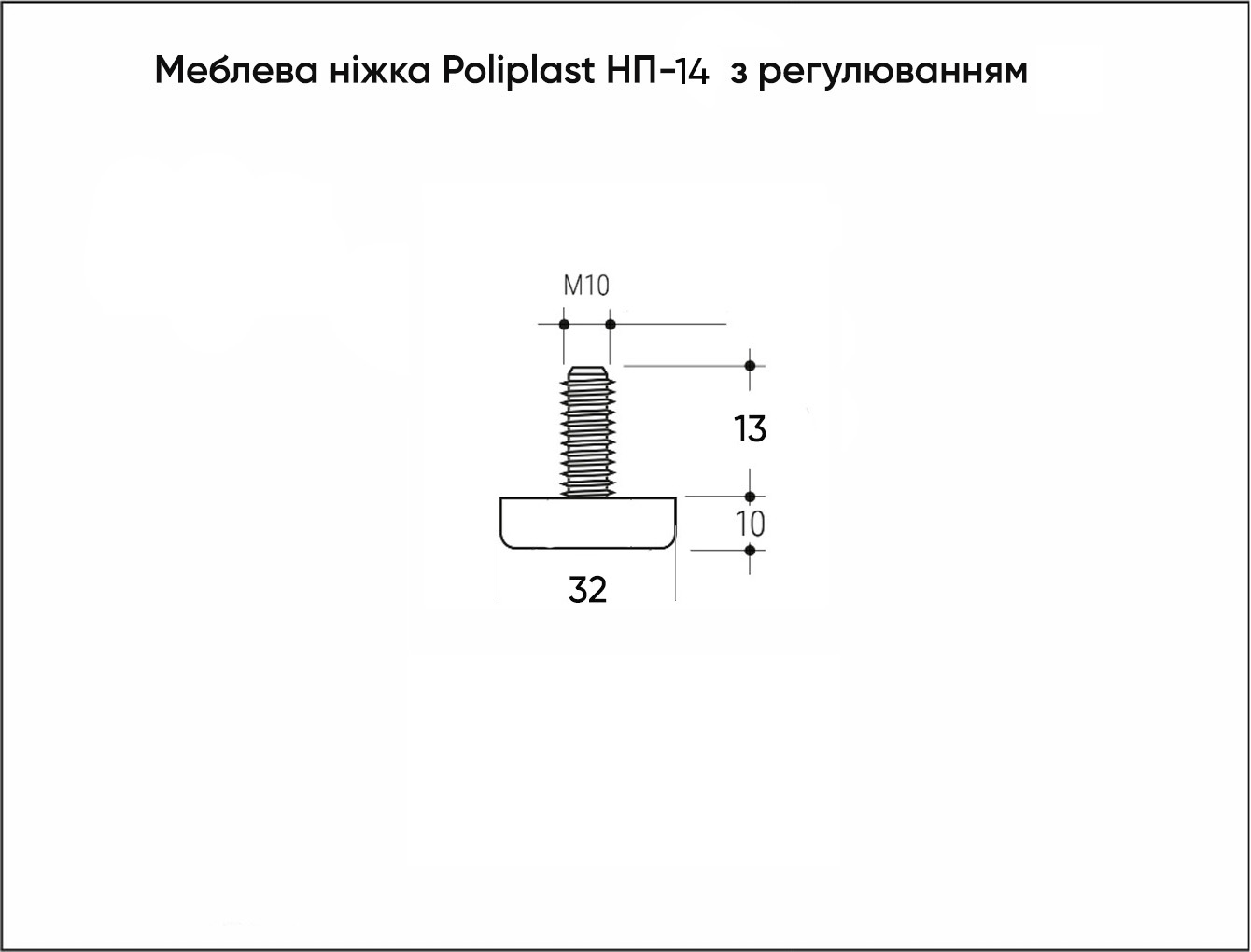 Меблева ніжка Poliplast НП-14 М10 з регулюванням, чорний