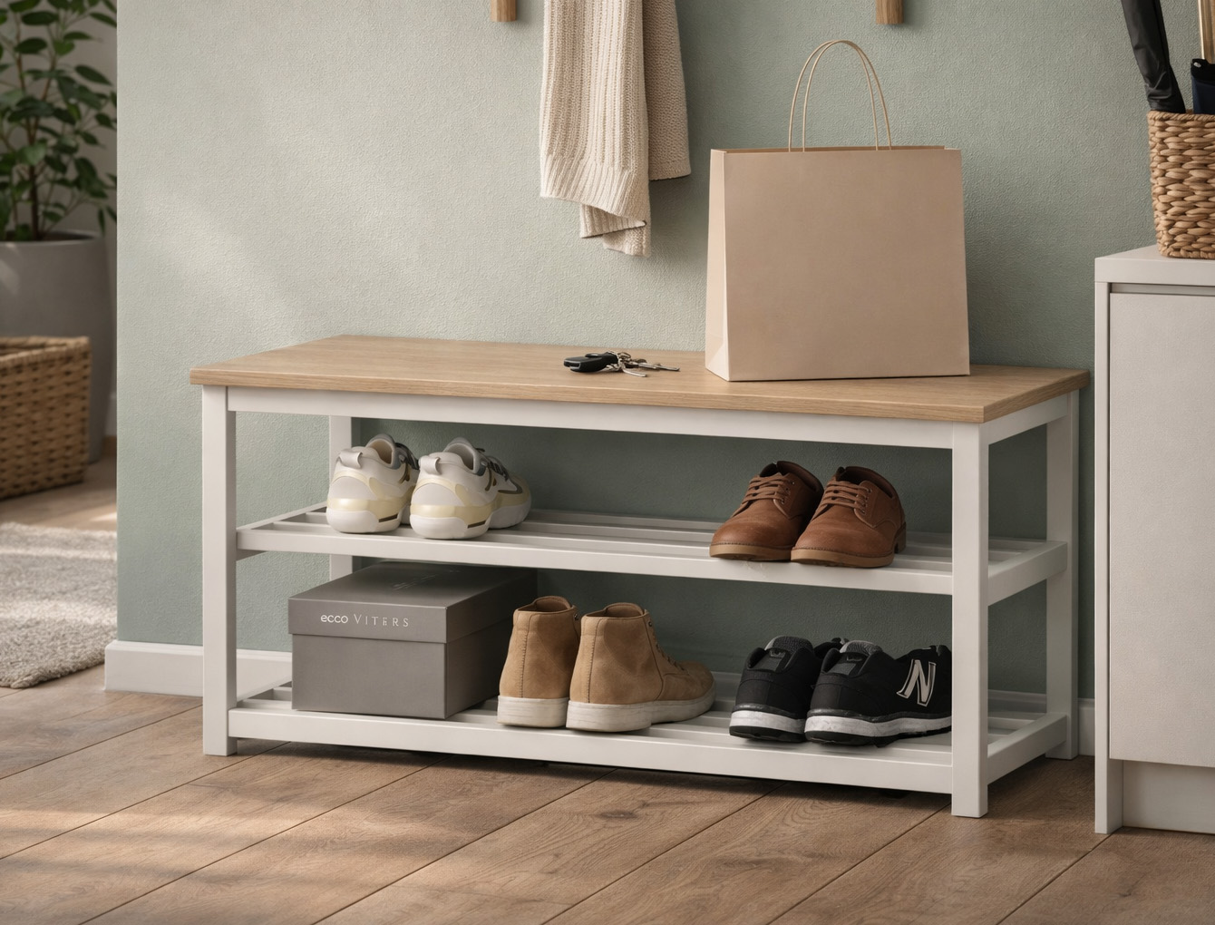 Банкетка металева розбірна в передпокій 1000мм, біла