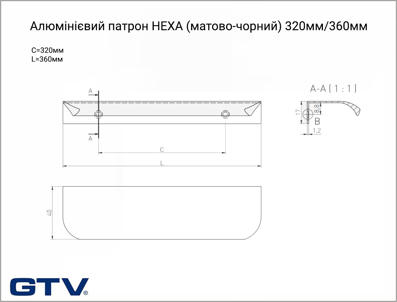 Меблева ручка торцева GTV HEXA L-320 мм, чорна (UA-HEXA-320-20M)