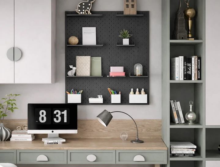 - У дитячій: Зберігайте іграшки, книжки, шкільне приладдя та творчі матеріали в нашій перфопанелі, щоб усе було на своєму місці.