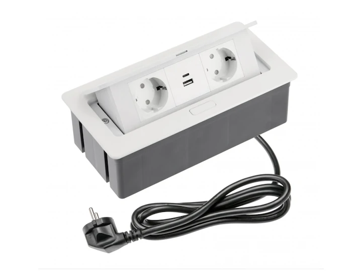 Завдяки універсальній конструкції підходить для монтажу у стільницю, кухонну поверхню або верстак. Забезпечує зручний доступ до розеток і допомагає підтримувати порядок у робочій зоні — вдома, в офісі чи майстерні.Корпус має сатинове покриття, що надає приємну на дотик поверхню та акуратний зовнішній вигляд. Установка проста та не потребує спеціальних інструментів. У комплект входить кабель живлення довжиною 1,5 метра, готовий до підключення.