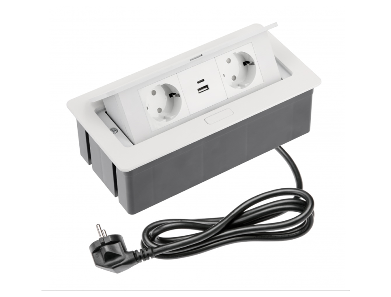 Меблева розетка SOFT, 2хSHUKO, USB A+С, кабель 1.5 м, білий