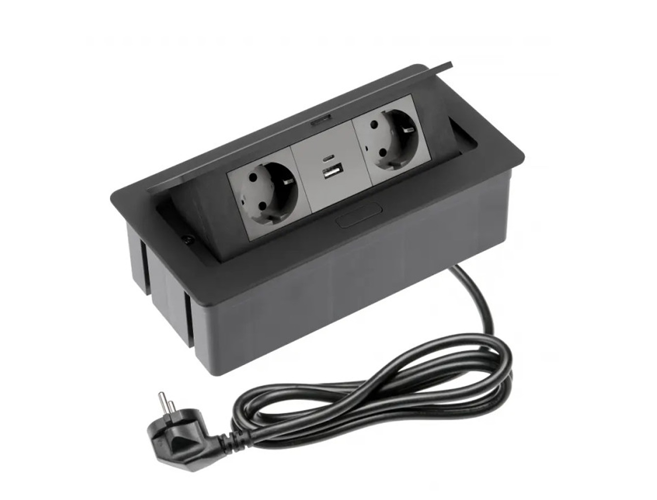 Меблева розетка SOFT, 2хSHUKO, USB A+С, кабель 1.5 м, чорний
