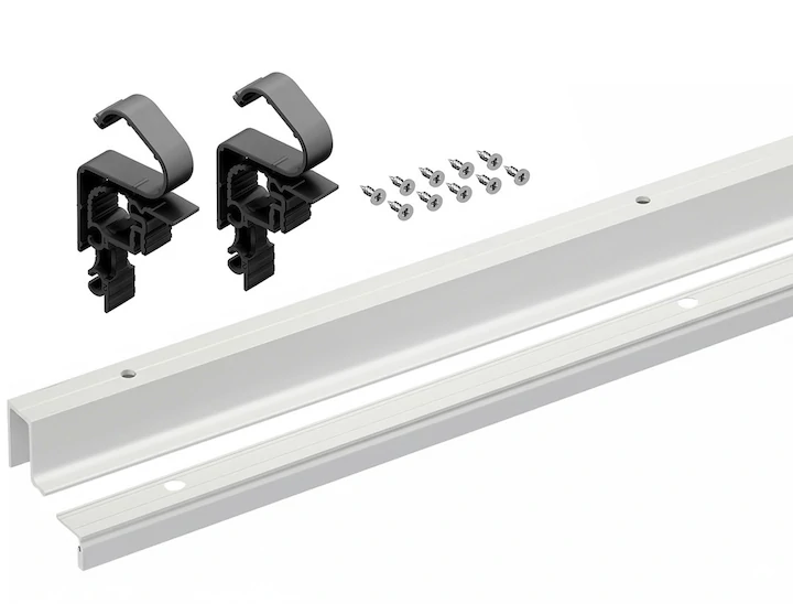 В комплект входять один ходовий та один напрямний профіль з алюмінію з перфорацією для кріплення, кріплення та монтажні пристрої