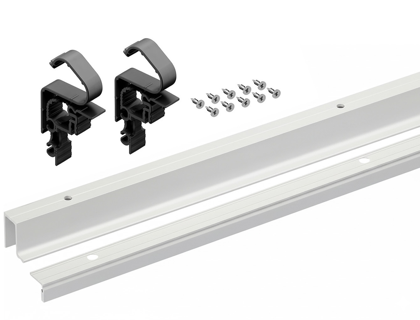 Комплект профілів для системи складаних (розсувних) дверей Hettich WingLine L (ходовий + направляючий профіль) з отворами, 2400 мм, біла