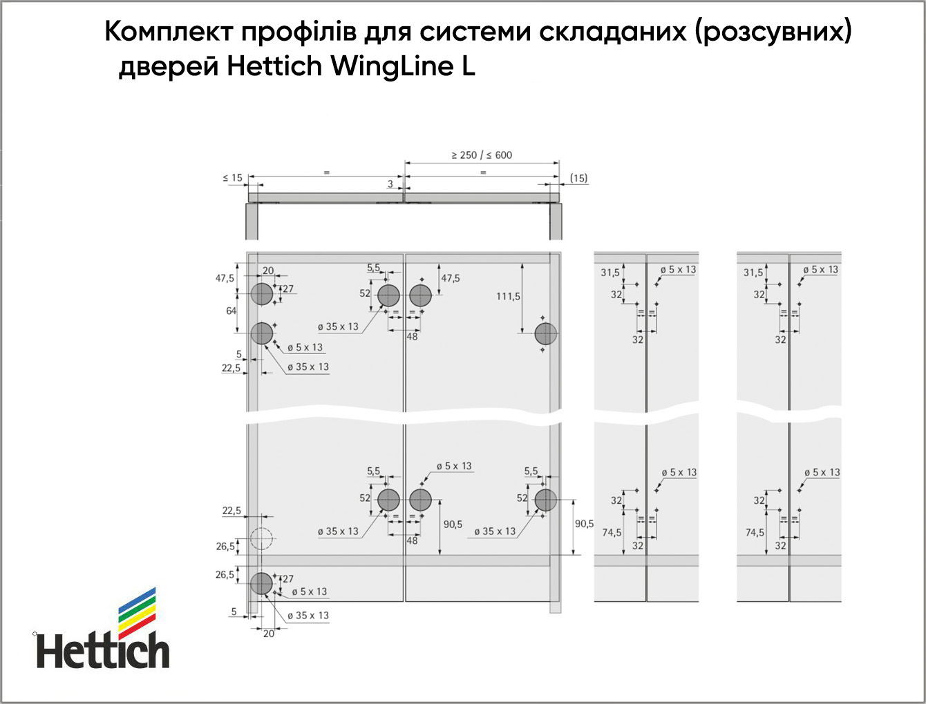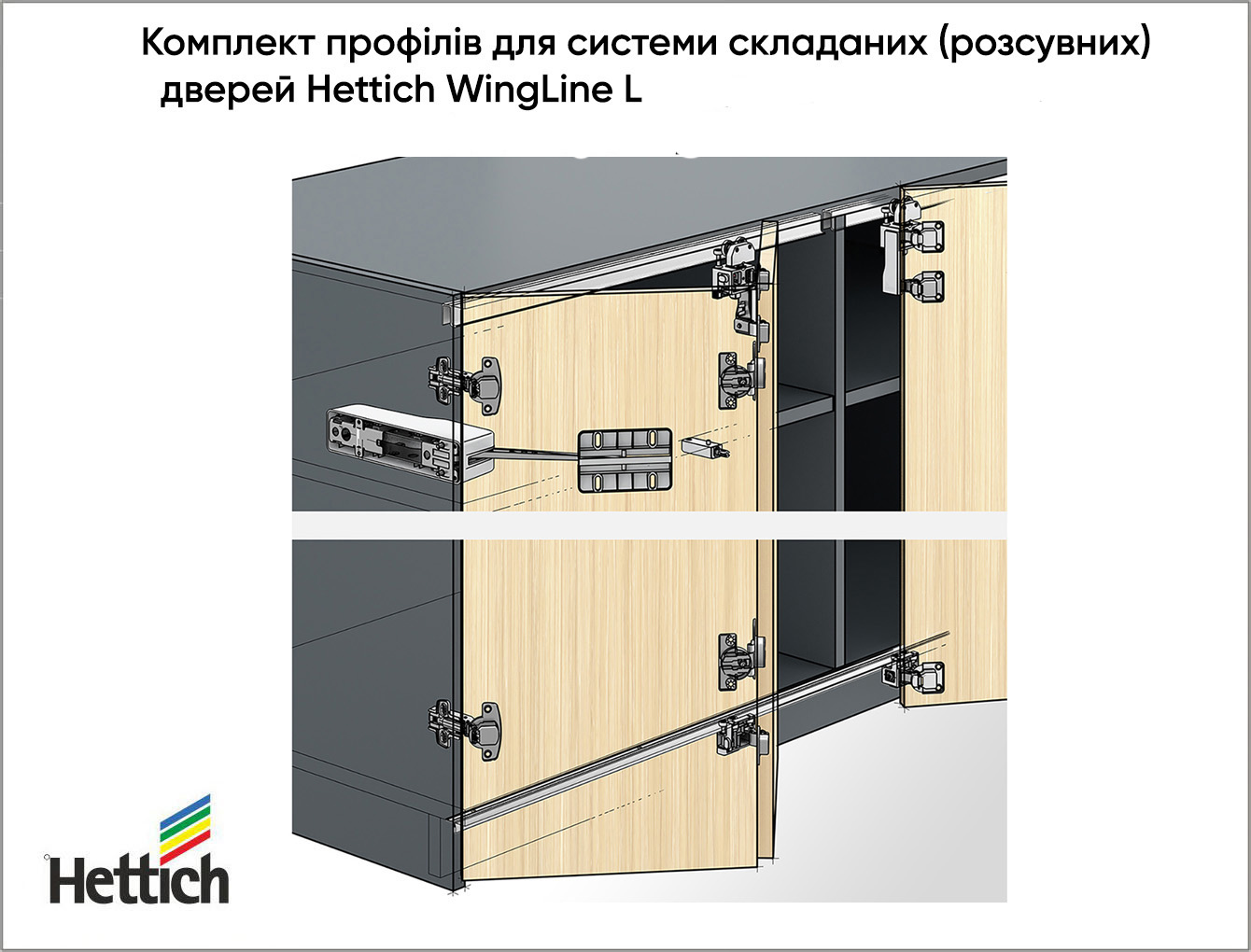 Комплект профілів для системи складаних (розсувних) дверей Hettich WingLine L (ходовий профіль) з отворами, 1200 мм, антрацит