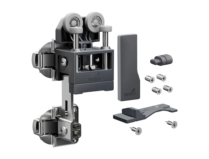 - Додаткове необхідне приладдя: профілі, середні петлі, петлі для монтажу комплекту дверей на корпус шафи (Sensys 8645i у поєднанні з хрестоподібною монтажною планкою з дистанцією 1,5 мм)