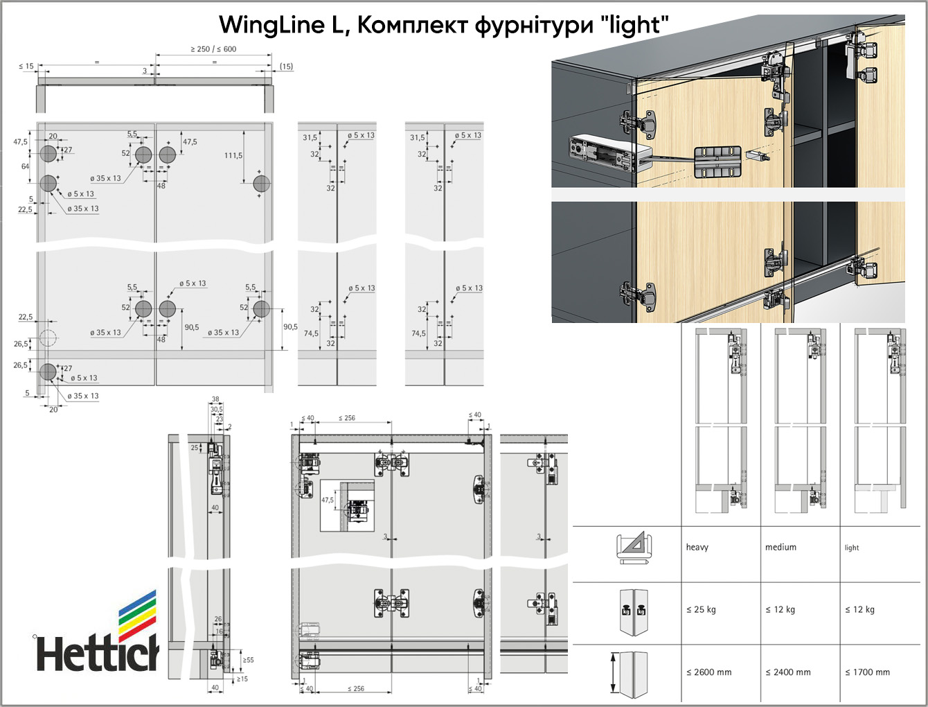 - Додаткове необхідне приладдя: профілі, середні петлі, петлі для монтажу комплекту дверей на корпус шафи (Sensys 8645i у поєднанні з хрестоподібною монтажною планкою з дистанцією 1,5 мм)