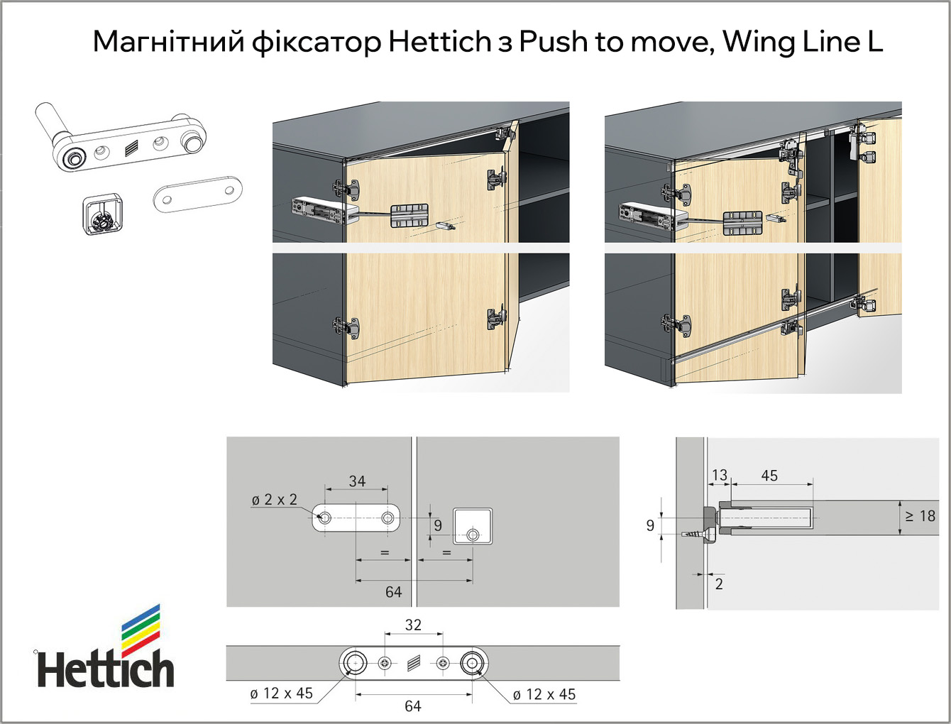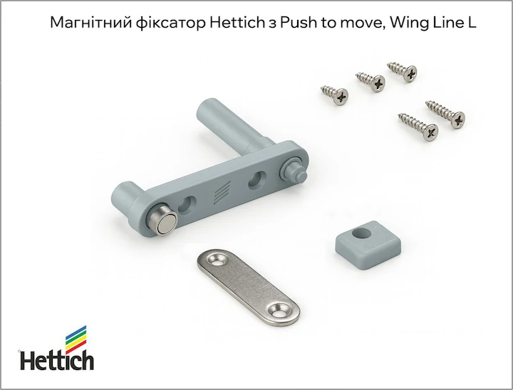 Магнітний фіксатор Hettich з Push to move, Wing Line L, сірий