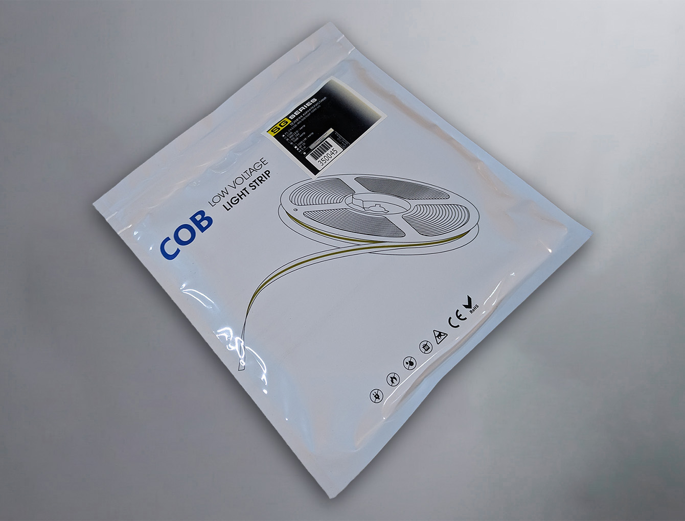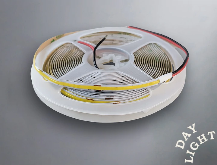 Ширина стрічки: 5 ммLED стрічка застосовується для підсвічування меблів, різноманітних дизайнерських елементів, робочої зони на кухні, картин, вітрин, вивісок, для прихованого, додаткового підсвічування, для святкових ілюмінацій. Світлодіодна стрічка випускається бухтою (5м), продається в будь-якій необхідній кількості, кратній 1 метр. Стрічку можна різати, нарощувати до необмеженої довжини за допомогою паяння або простого способу – за допомогою спеціального конектора. На 1 метрі гнучкої плати розміщено 480 світлодіодів. Стрічка не має вологозахисного покриття (IP20), тому використовувати на вулиці її не можна. Монтувати можна тільки всередині приміщення, де немає можливості намокання освітлювального приладу. Світлодіодна стрічка COB - це технологія світлодіодних стрічок, де світлодіоди об'єднані в один масив без видимих зазорів.