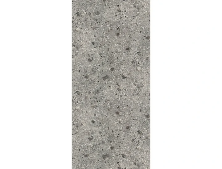Tераццо повертається в дизайн як ретро-елемент. Тераццо Тріестіно сірий — це яскрава версія збільшеного розміру, яка завдяки компонентам сірого кольору може гарно поєднуватися з поверхнями сучасних однотонних відтінків сірого, а також із дерев’яними декорами, як-от горіхом або світлим каштаном. Текстура ST75 Mineral Satin надає декору оксамитовості, але візуально додає природної нерівності.