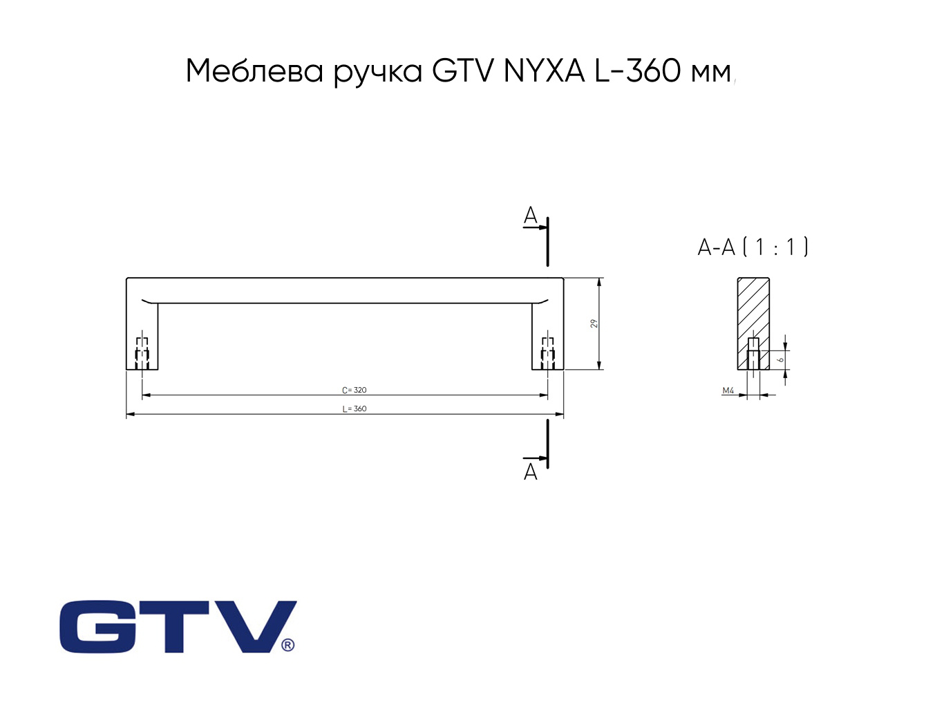 • ручка GTV NYXA L-360 мм, графіт світлий ( UZ-NYXA-320-18)