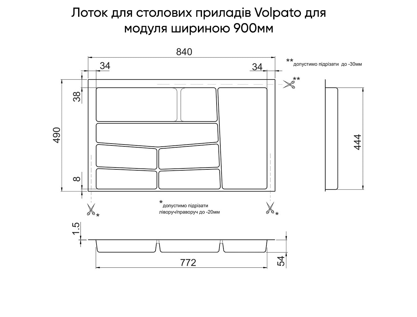 Лоток для столових приладів Volpato для модуля шириною 900мм (840х490), білий Матеріал: пластик Колір білий Розміри (ШхГ) мм: 840х490