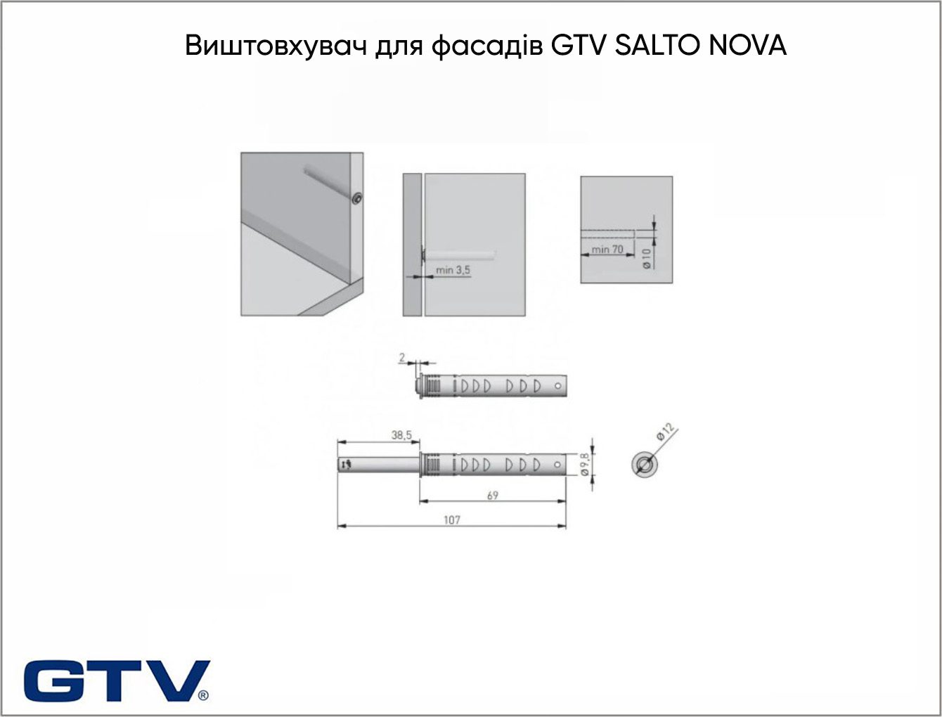 Технічна примітка: Для коректної роботи механізму мінімальний зазор між корпусом та фасадом має становити 3,5 мм.